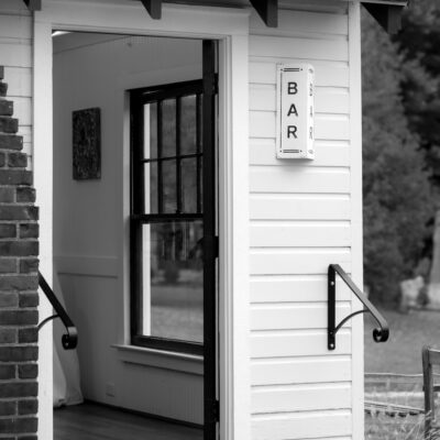 The pub bar, adjacent to the tent, can serve your guests delicious libations throughout the event. This cozy restored outbuilding is the newest on the property, dating back to 1915, complete with a fireplace, comfortable seating, and a quaint porch overlooking the property.