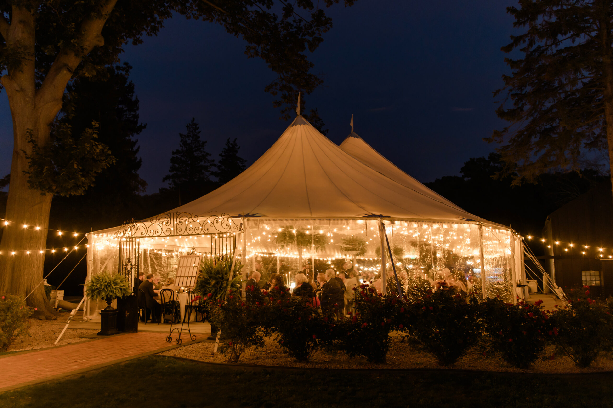 After strolling across the brick pathway through the great lawn, our own magnificent sailcloth tent, with its soaring peaks and tasteful lighting, is the perfect place for your guests to enjoy a curated culinary experience. The view from the tent includes 200 year-old specimen trees that stand guard and bear witness to every passing event on these grounds, and the historic iron fountain, dating to 1750, stuns with its cascading 10 foot water falls. With over 12 acres of manicured property, the opportunities for you to design your special day are endless.